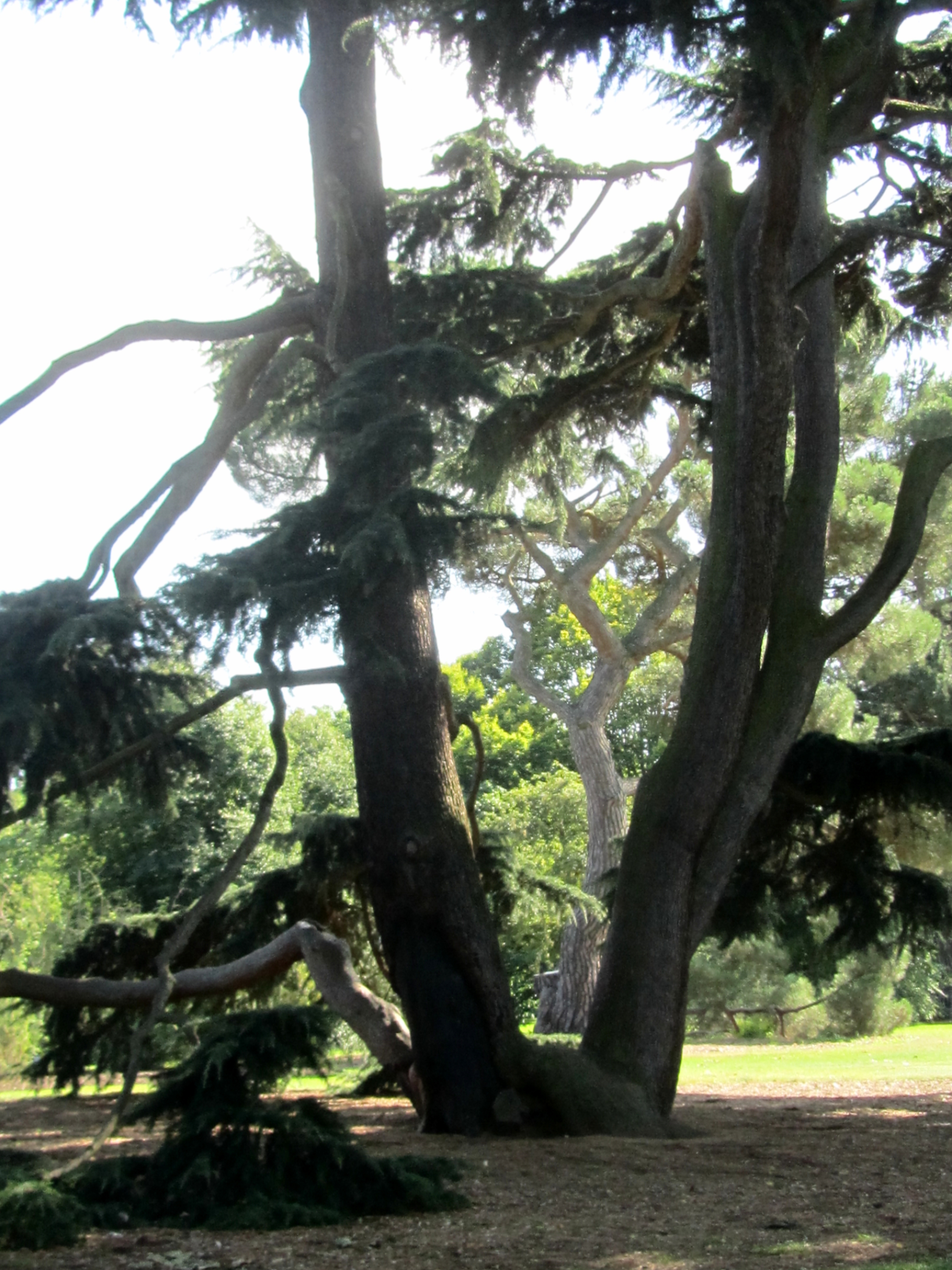 I reflect on our visit to Kew Gardens, where we walked through time with my cousin Karen and her husband. As with so many large tracts of land, the history of Kew is all wrapped up with the British royals, who owned much of the prime real estate in centuries past. The gardens began to take shape in the 1700s with successive royals adding to its size and splendor. We stroll through grove after grove of trees, each so thoughtfully planted and carefully tended. Peacocks, large wood pigeons, colorful ducks and other birds wander around with an air of ownership. We see the occasional swan in ponds laden with water lilies. The most amazing feature of the gardens are the large, very spectacular “glass houses,” ornate greenhouses filled with the more exotic plants in the collection. They are old to us, being built at least 150 years ago, but in Britain, the word old takes on a rather different meaning. Here, old goes back 1,000 years and ancient is even older! I see the trees as a cast of thousands, creating a frame for the main characters – the remarkable glass houses. Together with the water features, a small palace and other structures, they tell a wordless but eloquent story of the loving labors of many generations.
