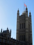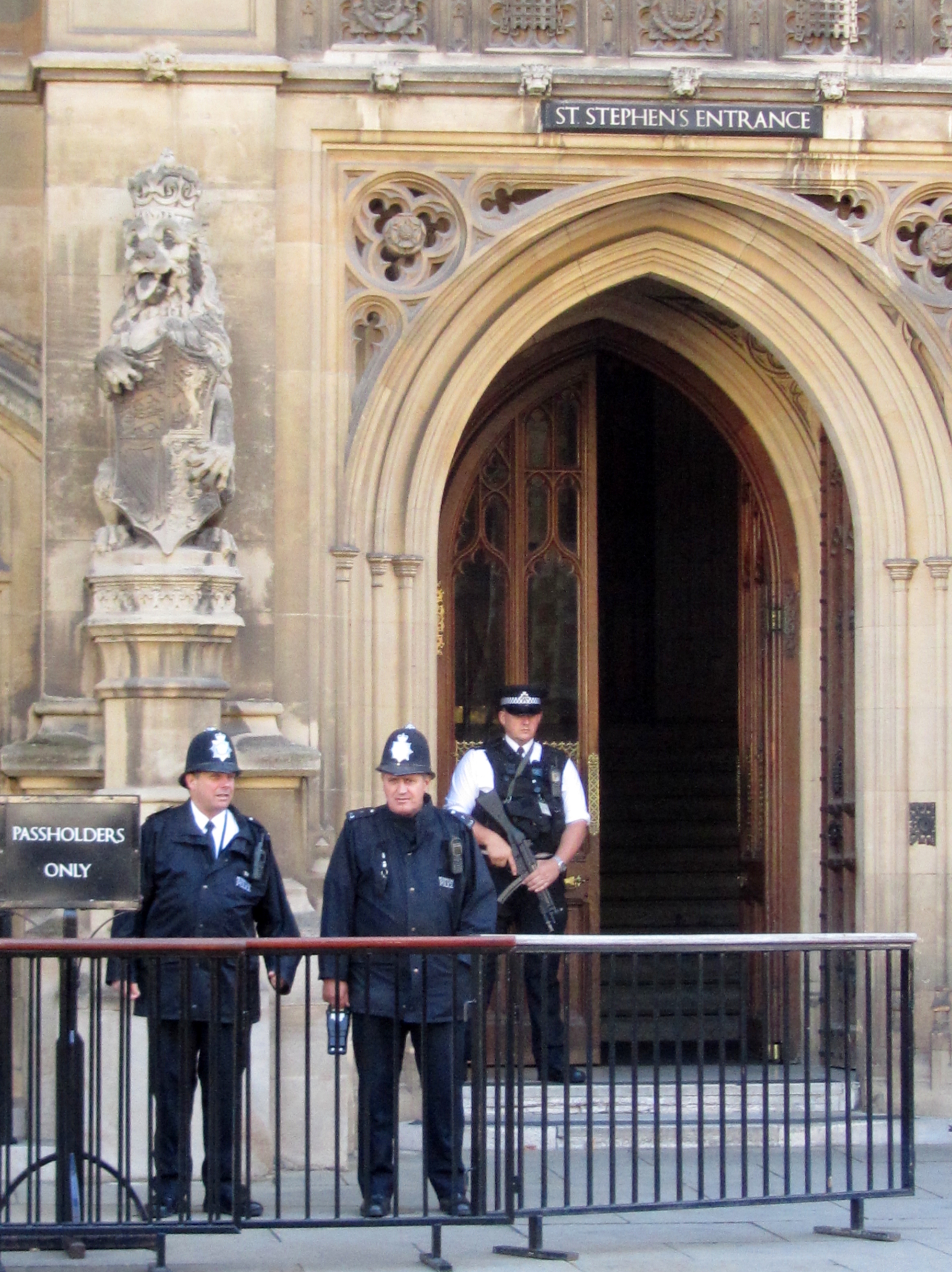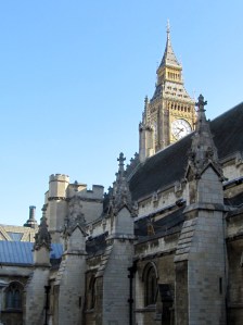 Parliament is located along the banks of the Thames in the heart of London. On the way to our tour, we pass through security that is not quite as stringent as the airport. It makes me a bit sad to think of this venerable and historic democracy having to arm its entrance, but I later learn some historical facts that give me perspective. Today we are with my auntie and uncle, who have traveled from Needingworth in Cambridgeshire to join us for a day of sightseeing. We enter through the Westminster Hall, the oldest surviving section of Parliament, built in 1097-1099 by King William II. I look up to consider the roof, which dates from 1401, and think about roofs in the U.S. that last 20 years. I stand on a plaque noting the date that the Speaker of the House, Sir Thomas More, was condemned to death in 1535. He also was the Lord Chancellor of England and author of the book Utopia. During the tour I learn that various kings would take a disliking to the activity or opinions in the House of Commons and would send soldiers to storm the doors and haul off hapless politicians. I imagine poor Sir More being in this group. In those days one really did need a serious commitment to one’s political platform!
