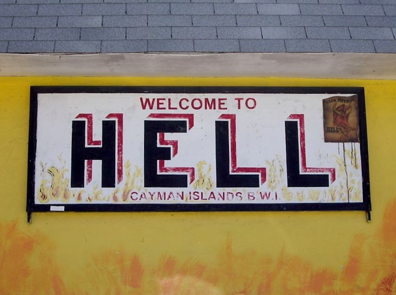 There is a very tiny village in the West Bay area of Grand Cayman called Hell. And we went there. On a very hot day. We arrived at the same time as a horde of tour buses that had downloaded crowds of truly hot, truly sweaty tourists from four cruise ships that had docked in Georgetown. And what better place for all of us on a hot, humid day than a quick trip to Hell?